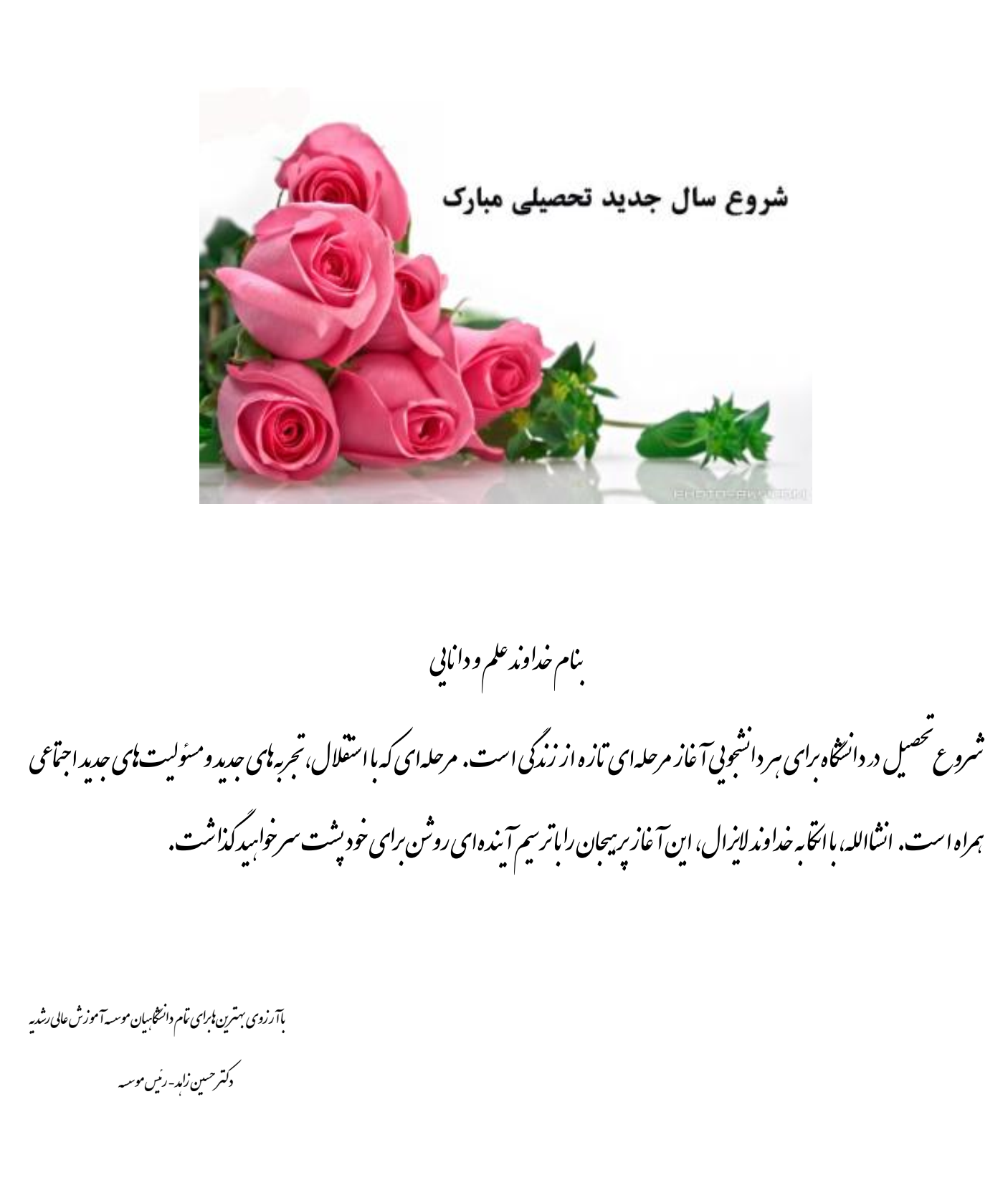 دسته بندی ها: اخبار, اخبار و اطلاعیه ها, اطلاعیه ها, پیام های ریاست, دسته بندی نشدهتوسط پیمان رسولی13 اکتبر 2025ارسال دیدگاه این پست را به اشتراک گذارید اشتراک گذاری در واتساپاشتراک گذاری در واتساپ نویسنده: پیمان رسولی ناوبری نوشتهقبلینوشته قبلی:اطلاعیه تمدید مهلت ثبت نامبعدینوشته بعدی:تمدید مهلت ثبت نام کارشناسی پیوسته تا پایان روز دوشنبه ۲۸ مهرماهمطالب مرتبطتبریک سال تحصیلی 140419 اکتبر 2025تمدید مهلت ثبت نام کارشناسی پیوسته تا پایان روز دوشنبه ۲۸ مهرماه18 اکتبر 2025اطلاعیه تمدید مهلت ثبت نام10 اکتبر 2025اطلاعیه مهم انتخاب واحد11 سپتامبر 2025تمدید مهلت پذیرش کارشناسی پیوسته11 سپتامبر 2025شهریه ورودی های مهر 1404 مقطع کارشناسی پیوسته01 سپتامبر 2025
